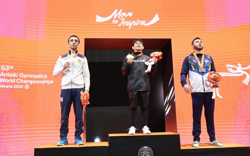 iMSPORT.TV – Olympic champion Carlos Yulo (PHI) shocked everyone — including himself — by sticking his piked Dragulescu first Vault, setting him up to win his second world title four years after his last.