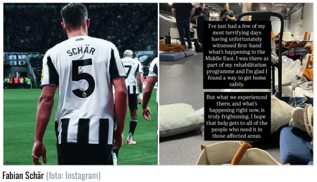 iMSPORT.TV – Pemain Newcastle United, Fabian Schar, merasakan ketakutan ketika berada di Timur Tengah, imbas perang Amerika Serikat dan Israel dengan Iran.