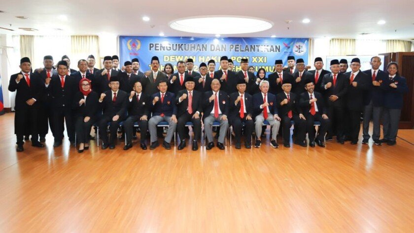 iMSPORT.TV – Dewan Hakim PON XXI Aceh-Sumut 2024 resmi melantik dan mengukuhkan beserta jajaran pada 21 Mei 2024, oleh Ketua Umum (Ketum) Komite Olahraga Nasional Indonesia (KONI) Pusat Letjen TNI Purn Marciano Norman, di Lounge lantai 12 Kantor KONI Pusat, Jakarta.