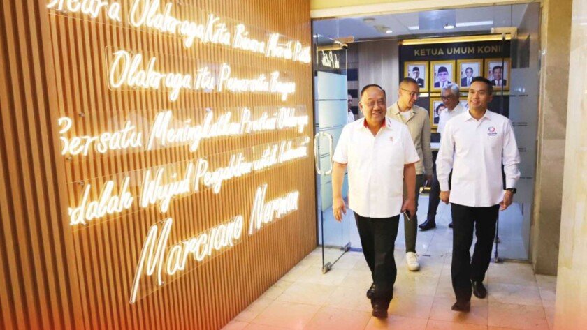 iMSPORT.TV – Chef de Mission (CdM) Kontingen Indonesia untuk Olimpiade Paris 2024, Anindya Novyan Bakrie berkunjung ke kantor Komite Olahraga Nasional Indonesia (KONI) Pusat Senayan pada Rabu 28 Februari 2024. Ketum KONI Pusat Letjen TNI Purn Marciano Norman menerima Anindya Bakrie yang juga Ketum Pengurus Besar Akuatik Indonesia (PBAI).