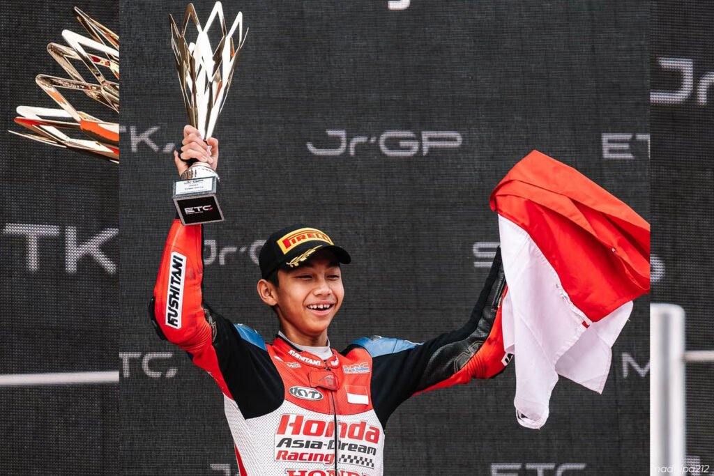 iMSPORT.TV – Pembalap muda Indonesia, Muhammad Kiandra Ramadhipa sukses meraih podium pertama pada ajang balap European Talent Cup (ETC) di Barcelona, Spanyol. Minggu (2/11/2025).