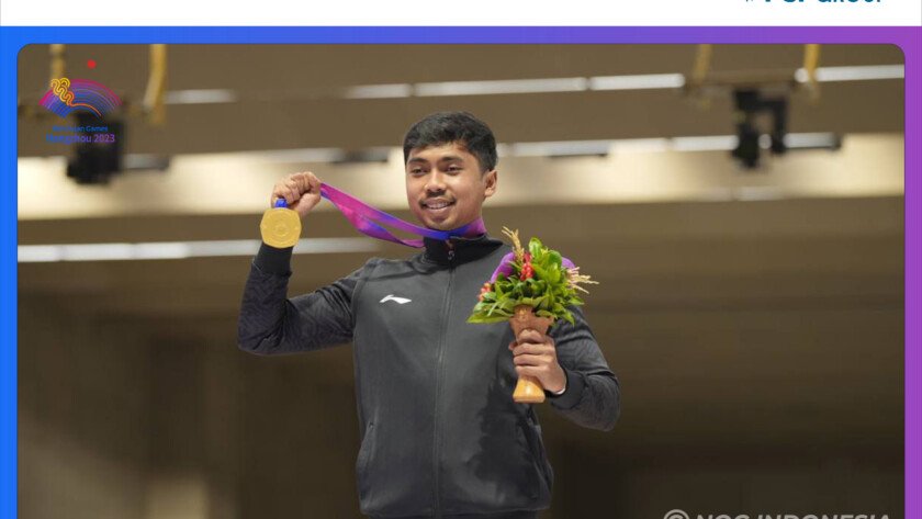 iMSPORT.TV - Asian Games 2023 Hangzhou | Penembak Indonesia, Muhammad Sejahtera Dwi Putra kembali menyumbang dua medali Asian Games 2023 Hangzhou untuk Indonesia di nomor Shooting-Men's 10 m Running Target Mixed Run Single dan Team pada laga yang digelar di Fuyang Yinhu Sports Center, Selasa (26/9/2023).