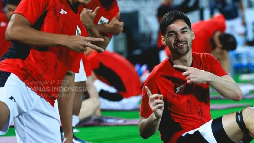 Ditemani pelatih fisik, Quentin Jakoba, tampak Maarten Paes, Jordi Amat, Shayne Pattynama, Ramadhan Sananta, Eliano Reijnders, Muhammad Ferarri, Rafael Struick, Mees Hilgers, dan Ricky Kambuaya melakukan pemanasan sebelum latihan utama di mulai. Tak…