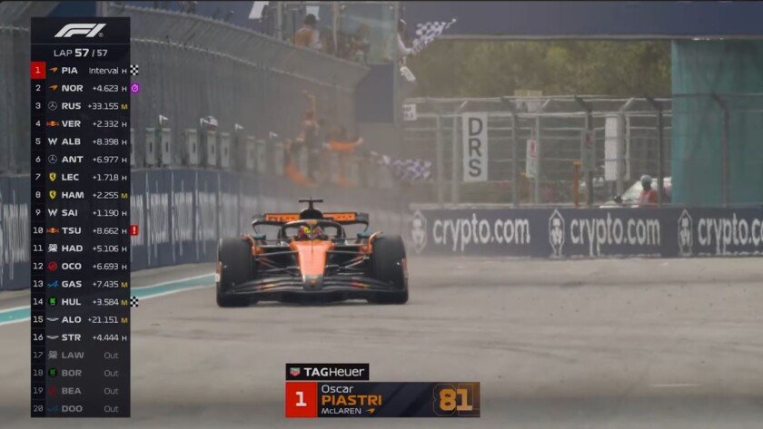 iMSPORT.TV – Race F1 GP Miami 2025: Oscar Piastri Catat Hattrick Kemenangan. Pembalap tim McLaren Oscar Piastri, mencatat hattrick kemenangan. Ia mengungguli Lando Norris dan George Russell, di Formula 1 (F1) GP Miami 2025 di Sirkuit Internasional Miami, Amerika Serikat pada Minggu (4/5) waktu setempat atau Senin dini hari WIB.