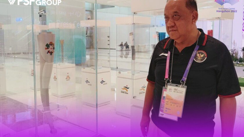 iMSPORT.TV - Ketua Umum (Ketum) Komite Olahraga Nasional Indonesia (KONI) Pusat Letjen TNI Purn Marciano Norman bersama jajarannya, serta Atase Darat Indonesia Beijing Kol Kav I Gede Masa berkunjung ke media center Asian Games Hangzhou di Hangzhou International Expo Center. Sabtu (7/10).