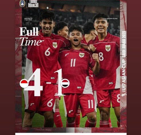 iMSPORT.TV – Ucapan Pemain Senior ke Timnas U-17 usai Lolos ke Piala Dunia U-17 2025. Timnas U-17 Indonesia memastikan tiket Piala Dunia u-17 2025 usai melumat Yaman U-17 dengan skor 4-1. Keberhasilan skuad Garuda Muda ini mendapat respon positif dari para punggawa timnas Indonesia di level senior.